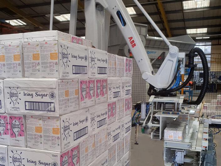 RMGroup offers user-friendly palletising robots and robot palletising systems, in stock and ready for quick delivery globally. These solutions ensure seamless integration into your production line, reducing overhead costs instantly and boosting efficiency.